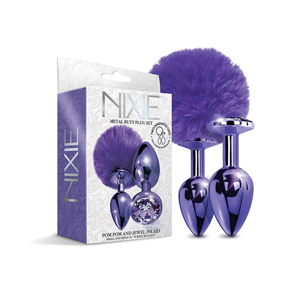 NIXIE METAL BUTT PLUG SET POM POM & JEWEL PURPLE METALLIC