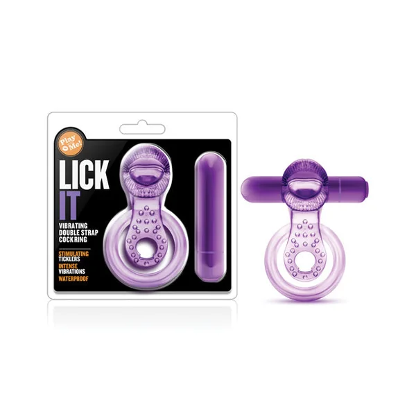 Blush Play With Me Lick It Vibrating Double Strap Cockring – Purple